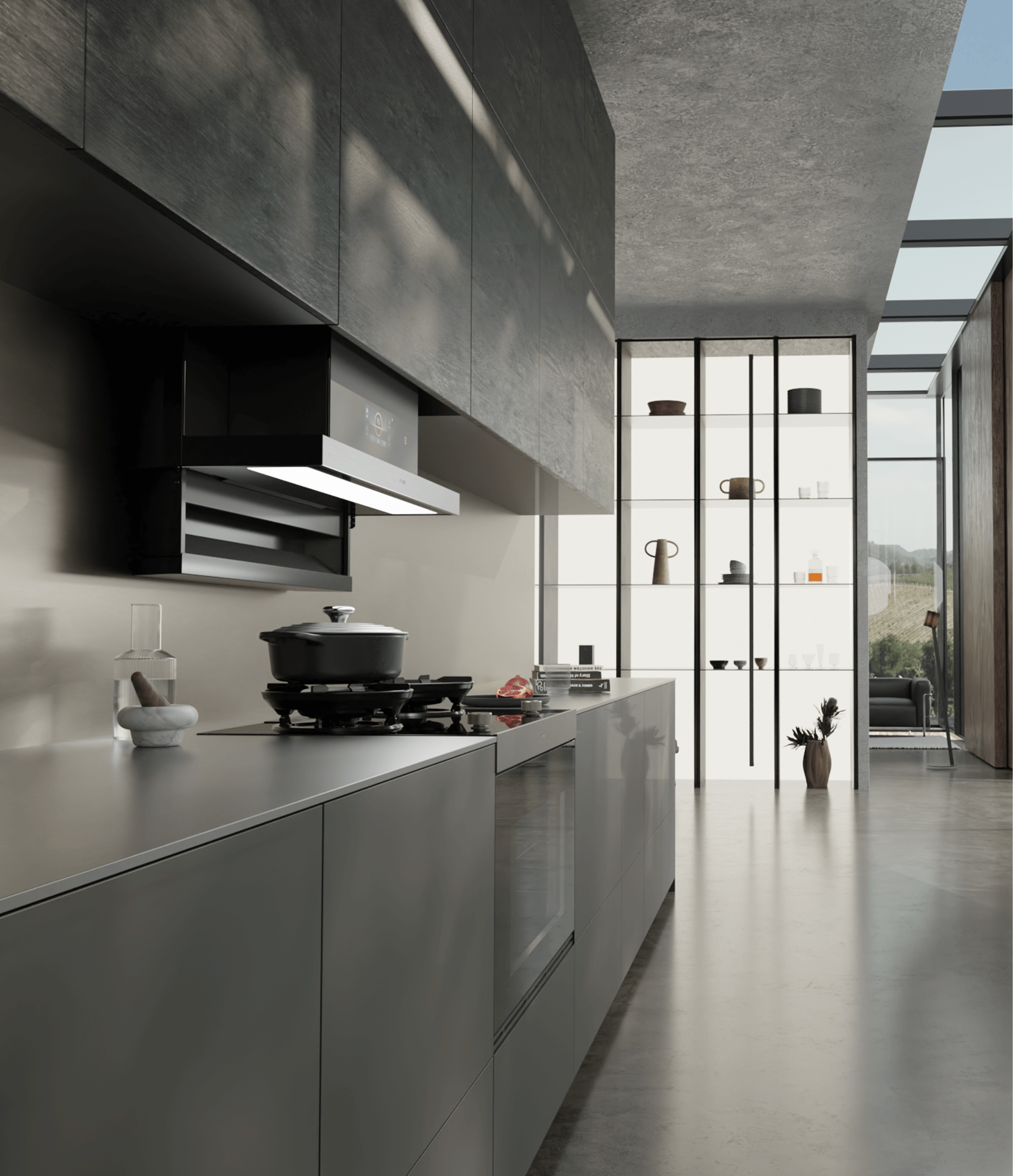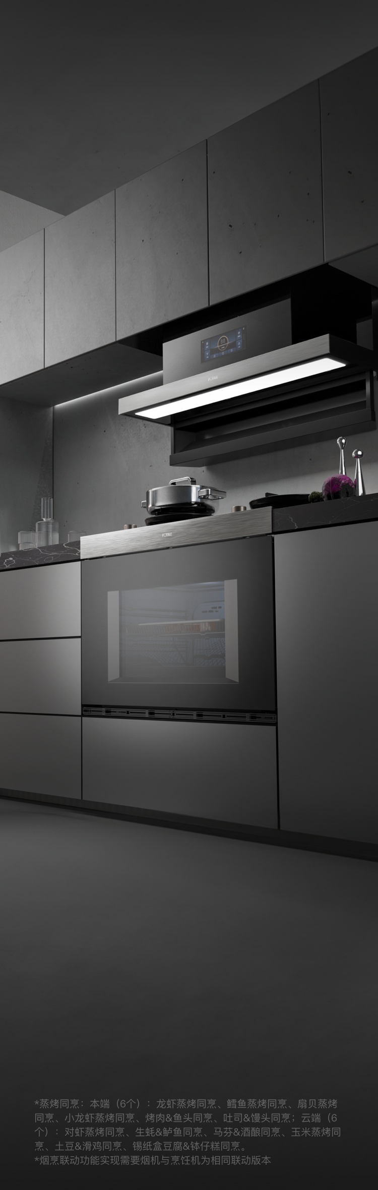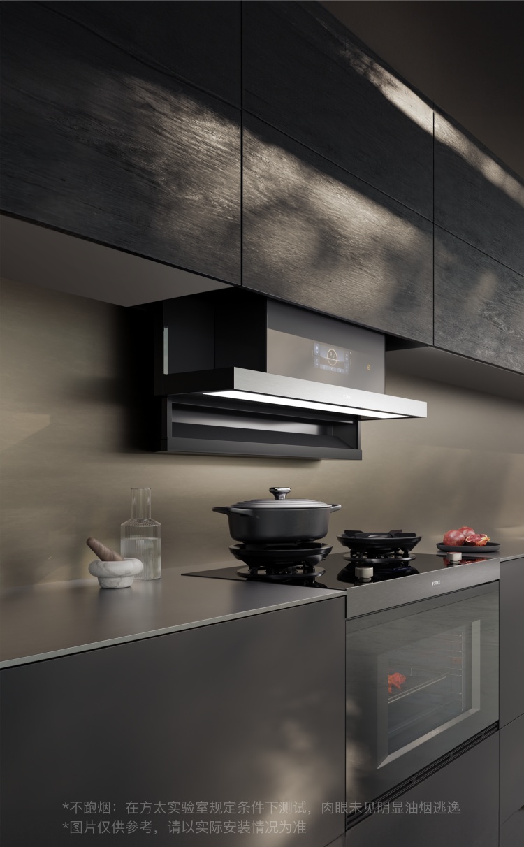 革新欧式形态,以全新形态解决空间与效果的矛盾,升起时融合一体,适配万千厨房;下降直逼油烟源头,顺势上排,给你想要的安心。