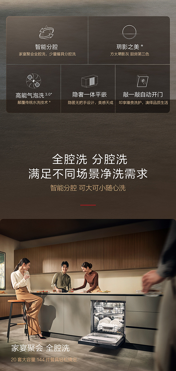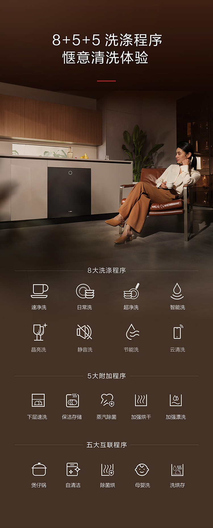 设备端:速净洗、日常洗、超净洗、节能洗、晶亮洗、智能洗、静音洗、云清洗;方太幸福家APP端:母婴洗、蒸汽消杀、煲仔锅、洗烘存、自清洁、谷电洗、暖碟