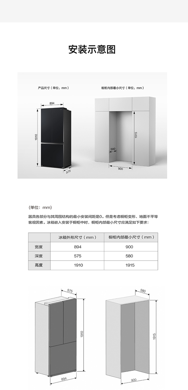 宽(左右)≥900*深(前后)≥580mm*高(上下)≥1915mm