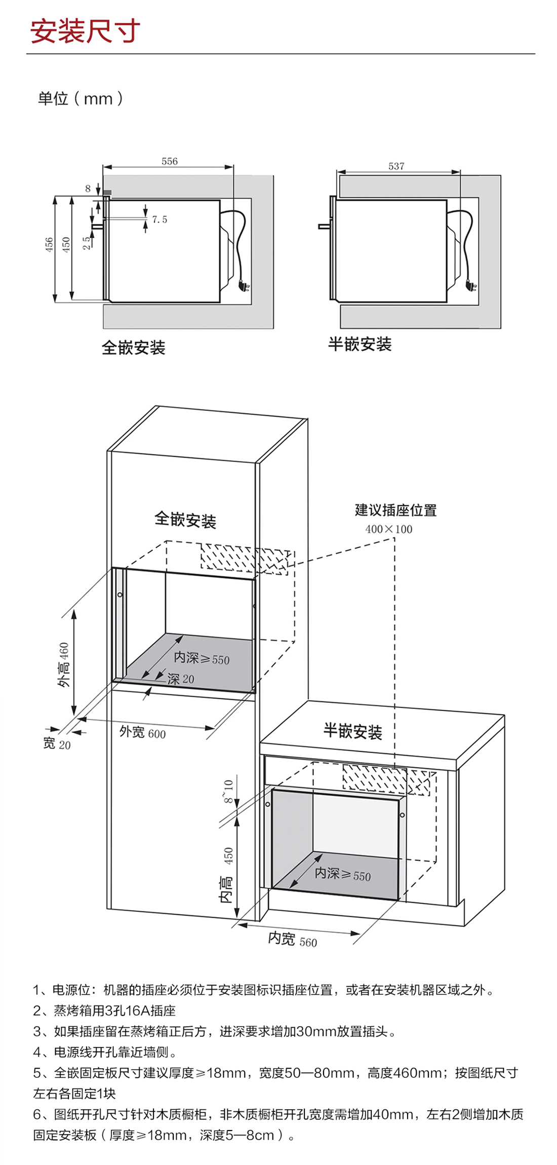 宽(左右)560*高(上下)450*深(前后)≥550mm