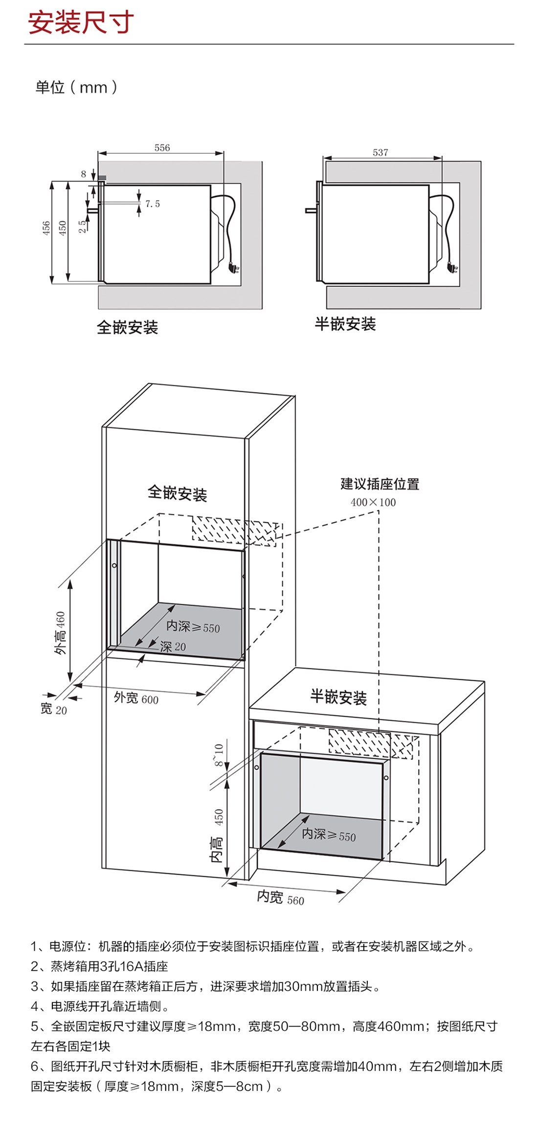 宽(左右)560*高(上下)450*深(前后)≥550mm