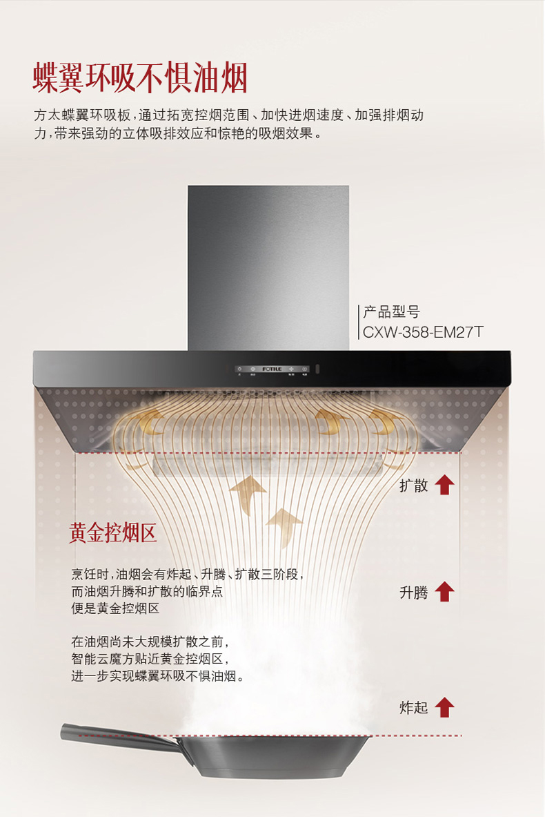 不跑烟:在方太实验室规定条件下测试,肉眼未见明显油烟逃逸