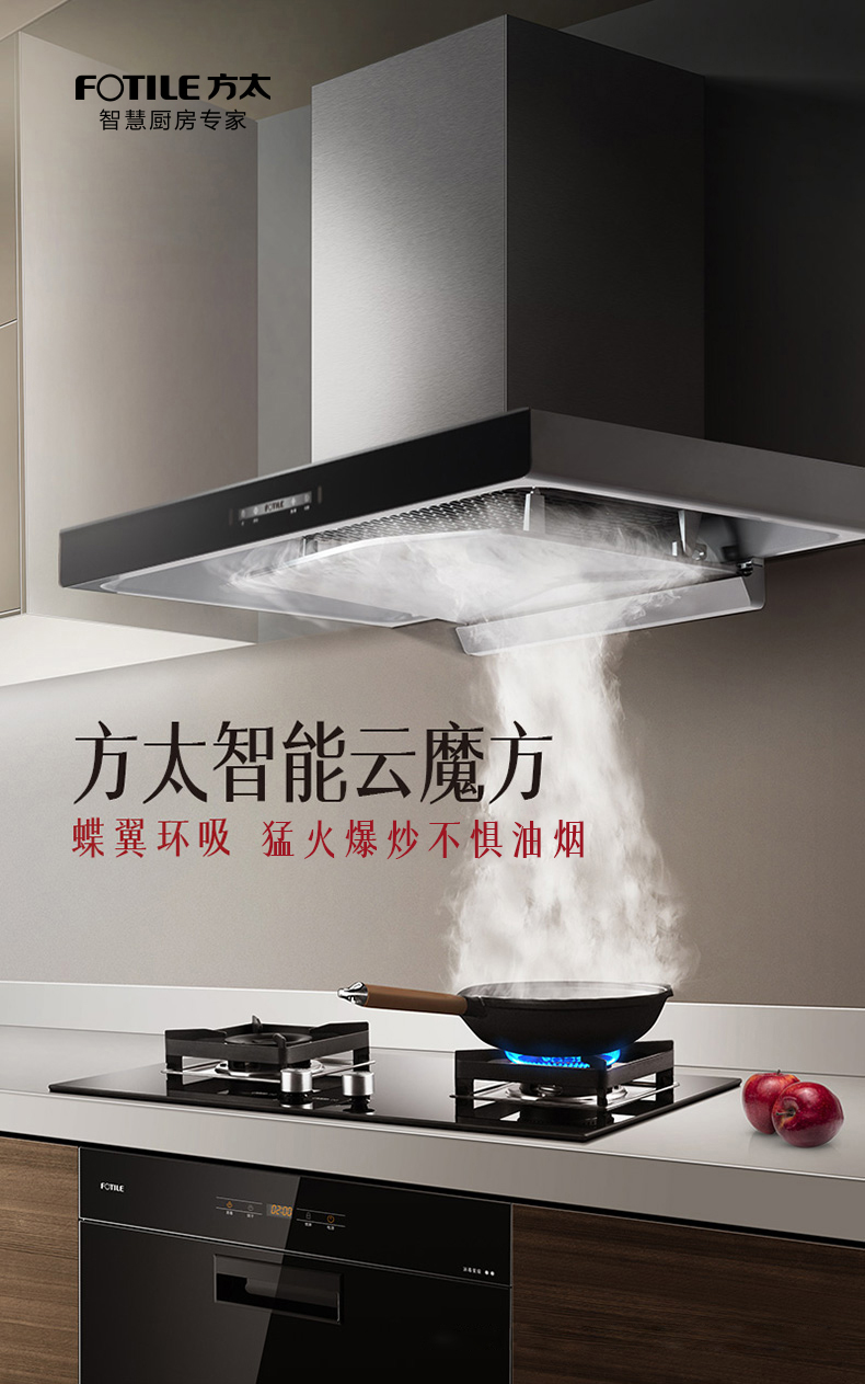 不跑烟:在方太实验室规定条件下测试,肉眼未见明显油烟逃逸