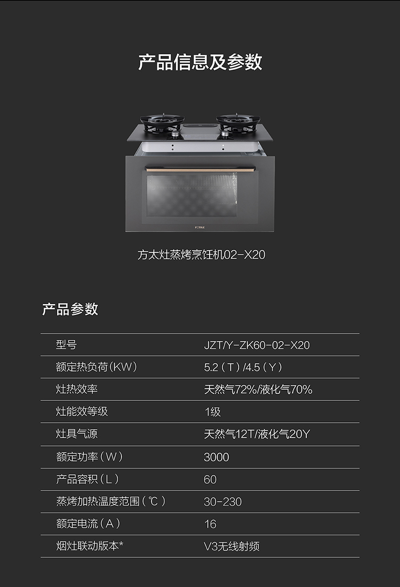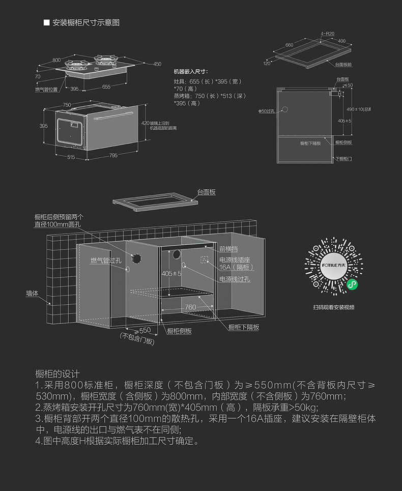 分体:灶具:长(左右)800*宽(前后)450*高(上下)70mm(灶具面板上沿至底盘下沿)/蒸烤箱:长(左右)795*宽(前后)515*高395(箱体上下)mm(玻璃上沿到机器底部距离420mm)