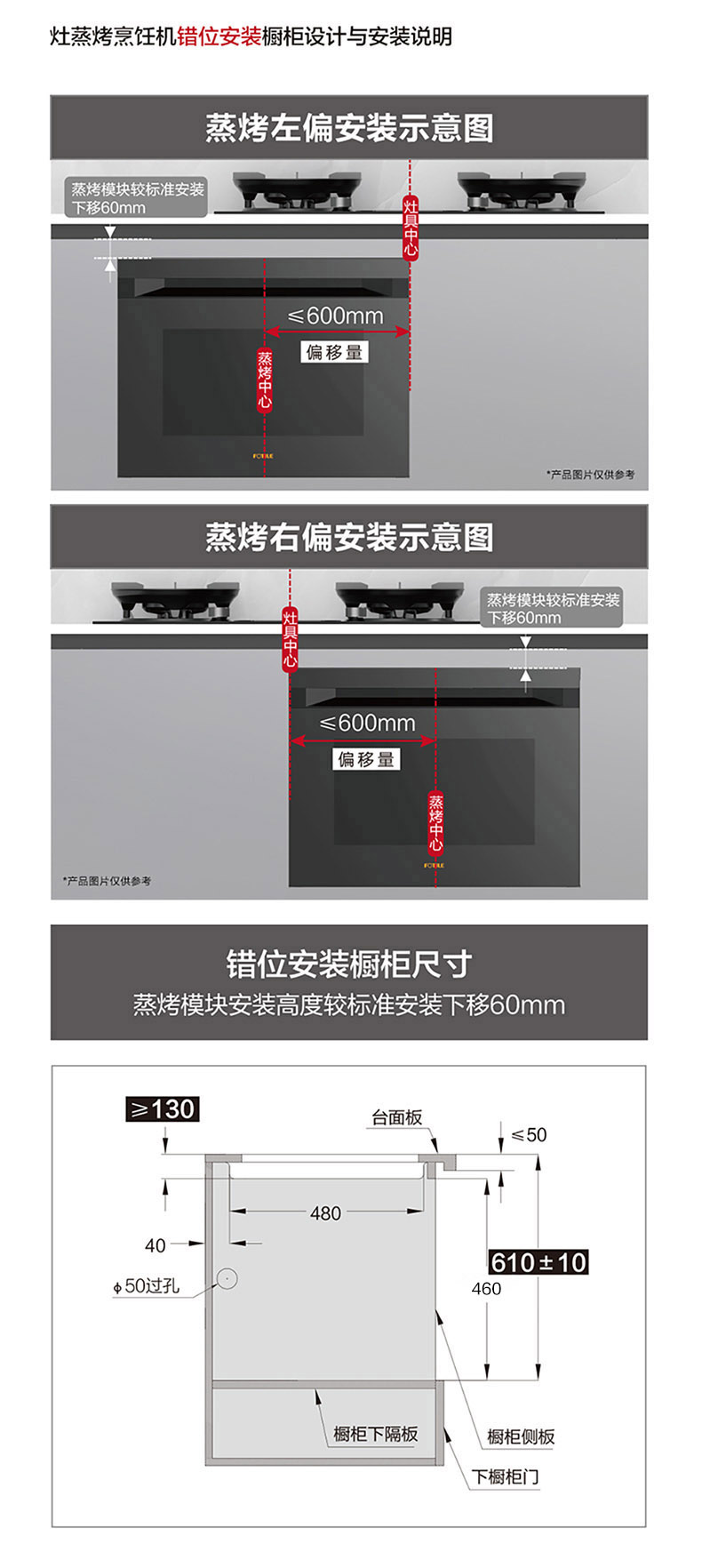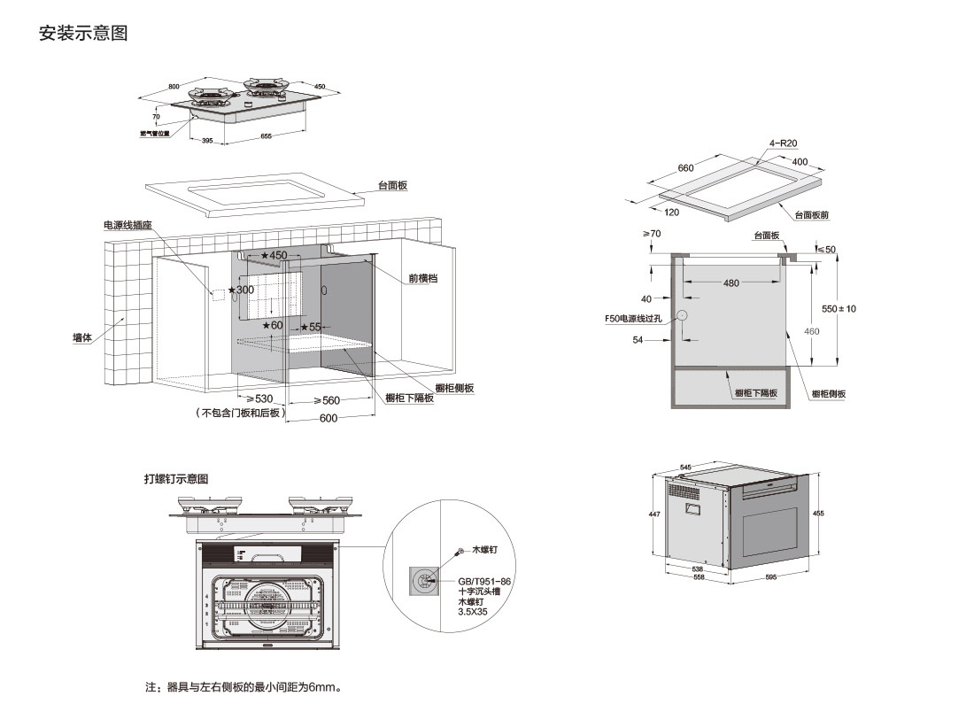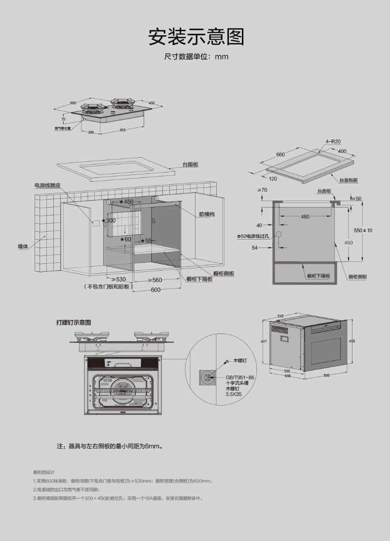 分体:灶具:长(左右)800*宽(前后)450*高(上下)70mm(灶具面板上沿至底盘下沿)/蒸烤箱:长(左右)595*宽(前后)558*高447(箱体上下)mm(玻璃上沿到机器底部的距离455mm)