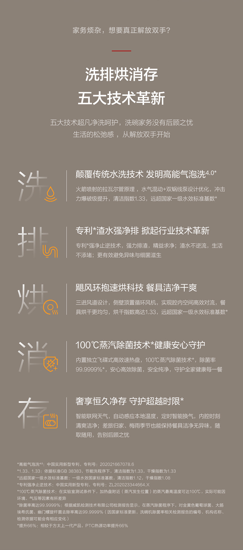 设备端:保洁存储、加强烘干、下层速洗;方太幸福家APP端:加强漂洗