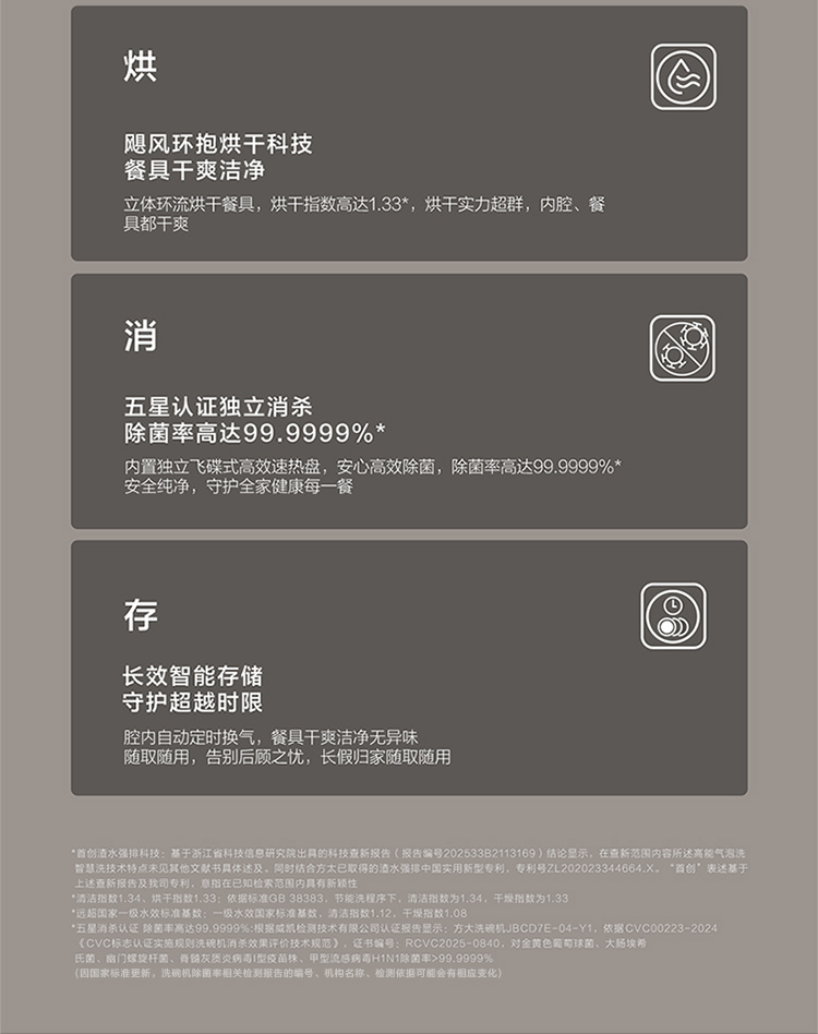 设备端:速净洗、日常洗、超净洗、节能洗、晶亮洗、智能洗、静音洗、云清洗、蒸汽消杀、独立烘干
