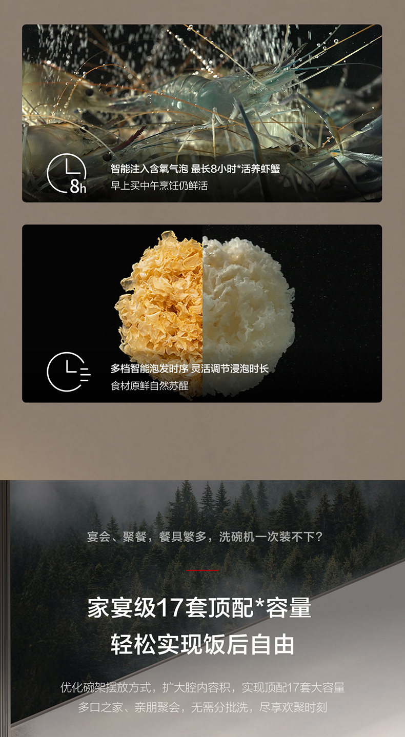下区:深盘8个、浅盘9个、饭碗17个、面碗8个、佐料碟9个、玻璃杯9个、马克杯8个、筷子17双、小汤勺17个、饭勺1个、大汤勺1个、大汤碗1个、蒸鱼盘1个