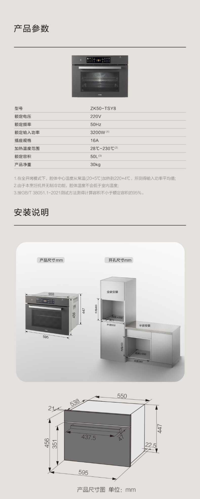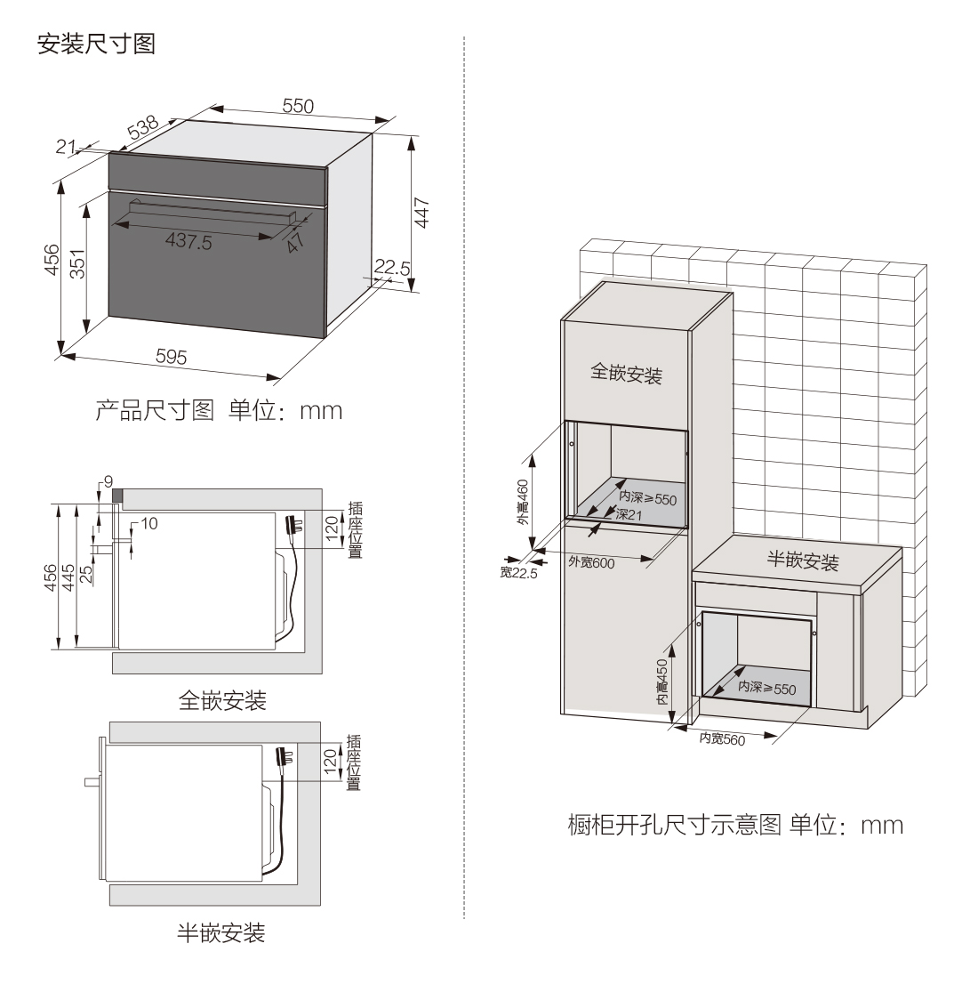 宽(左右)560*高(上下)450*深(前后)≥550mm