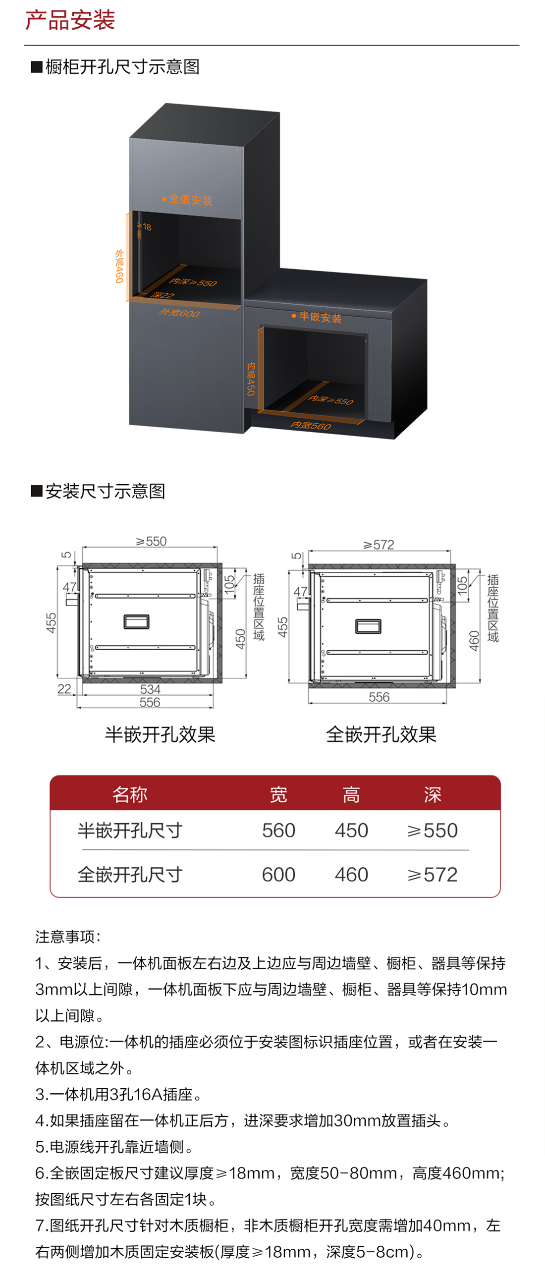 宽(左右)560*高(上下)450*深(前后)≥550mm