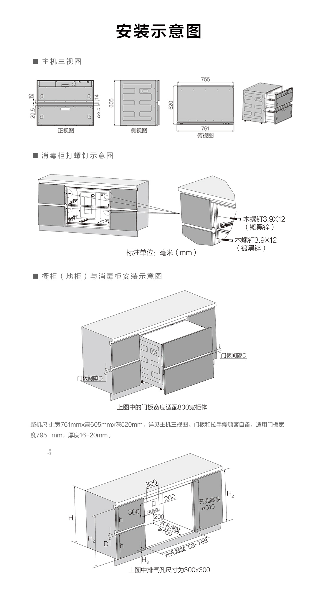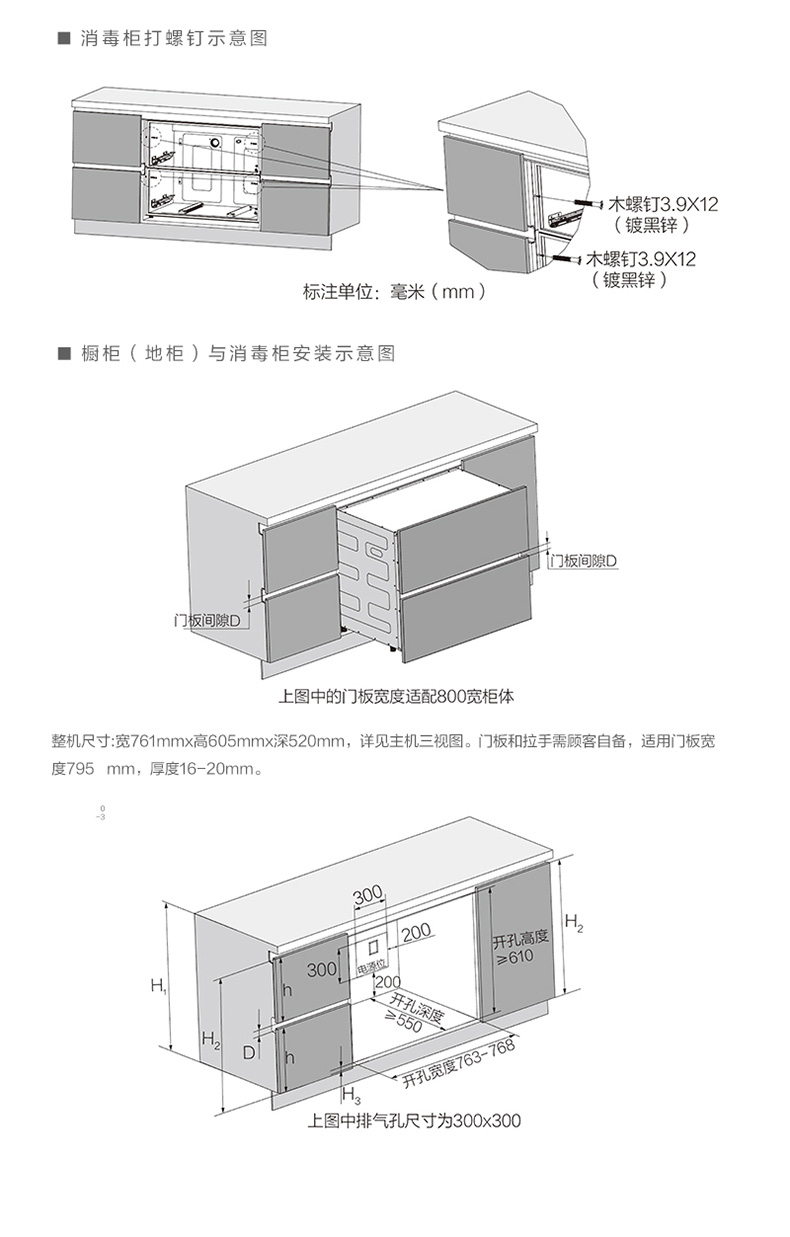 宽(左右)(763-768)*高(上下)≥610*深(前后)≥550mm