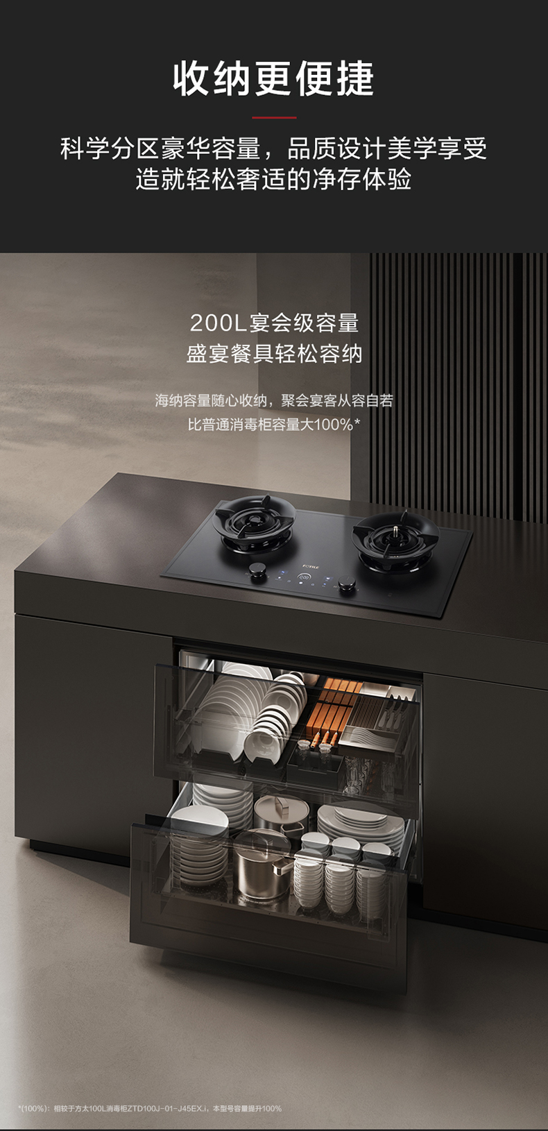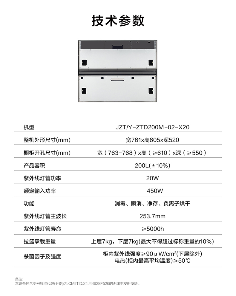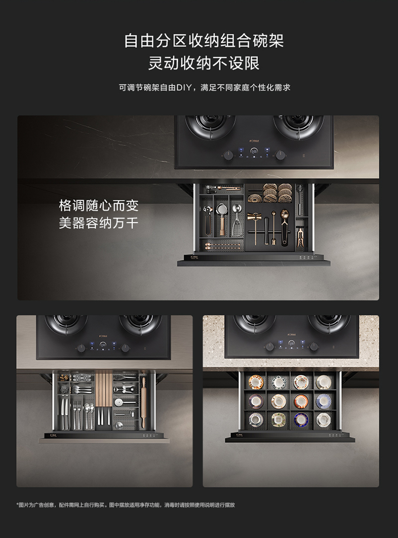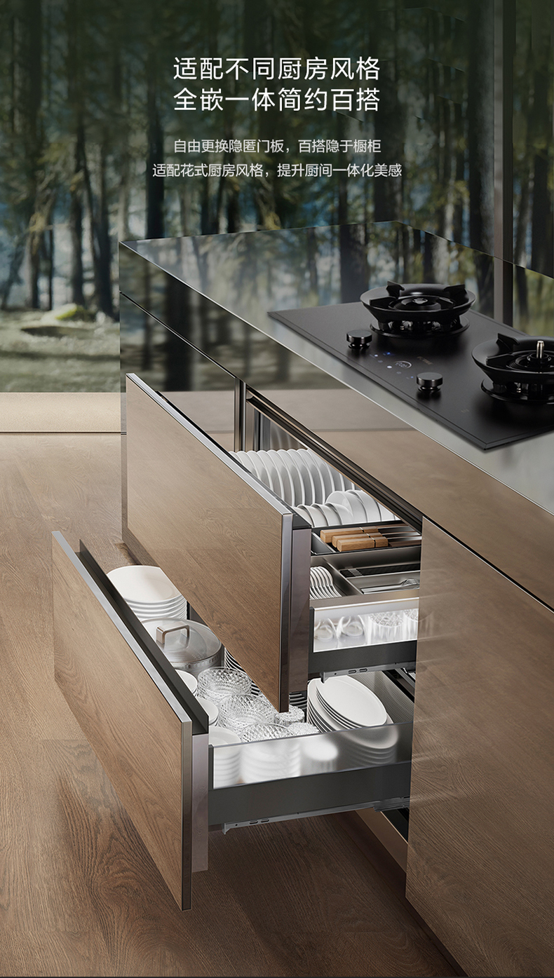 分体:灶具部分:长(左右)868*宽(前后)458mm*高(上下)150mm;消毒柜部分:长(左右)761*宽(前后)520mm*高(上下)605mm