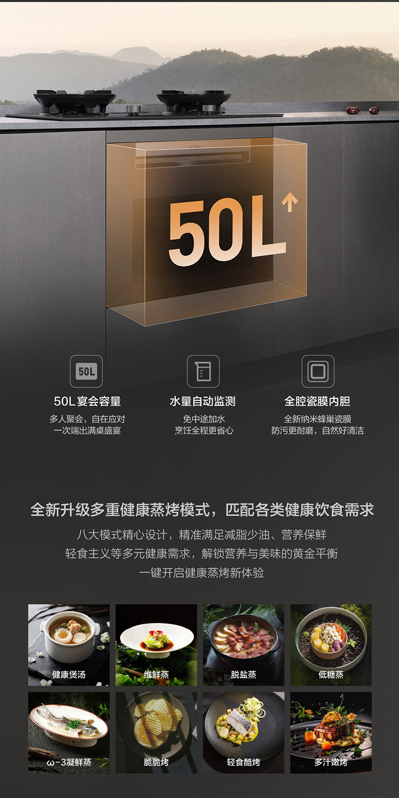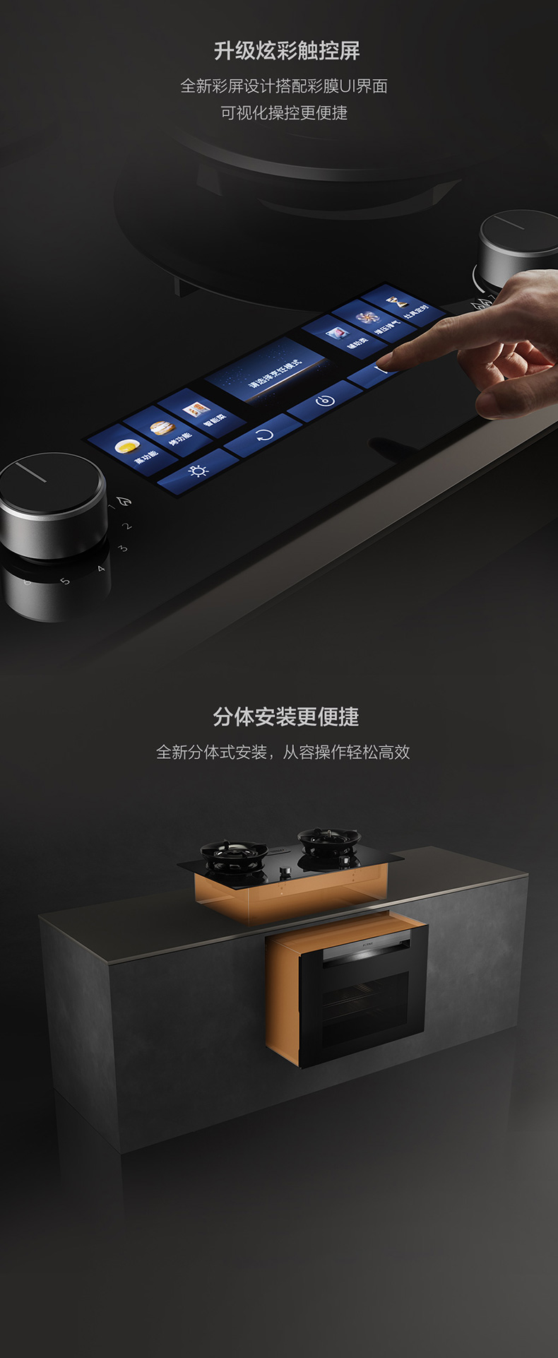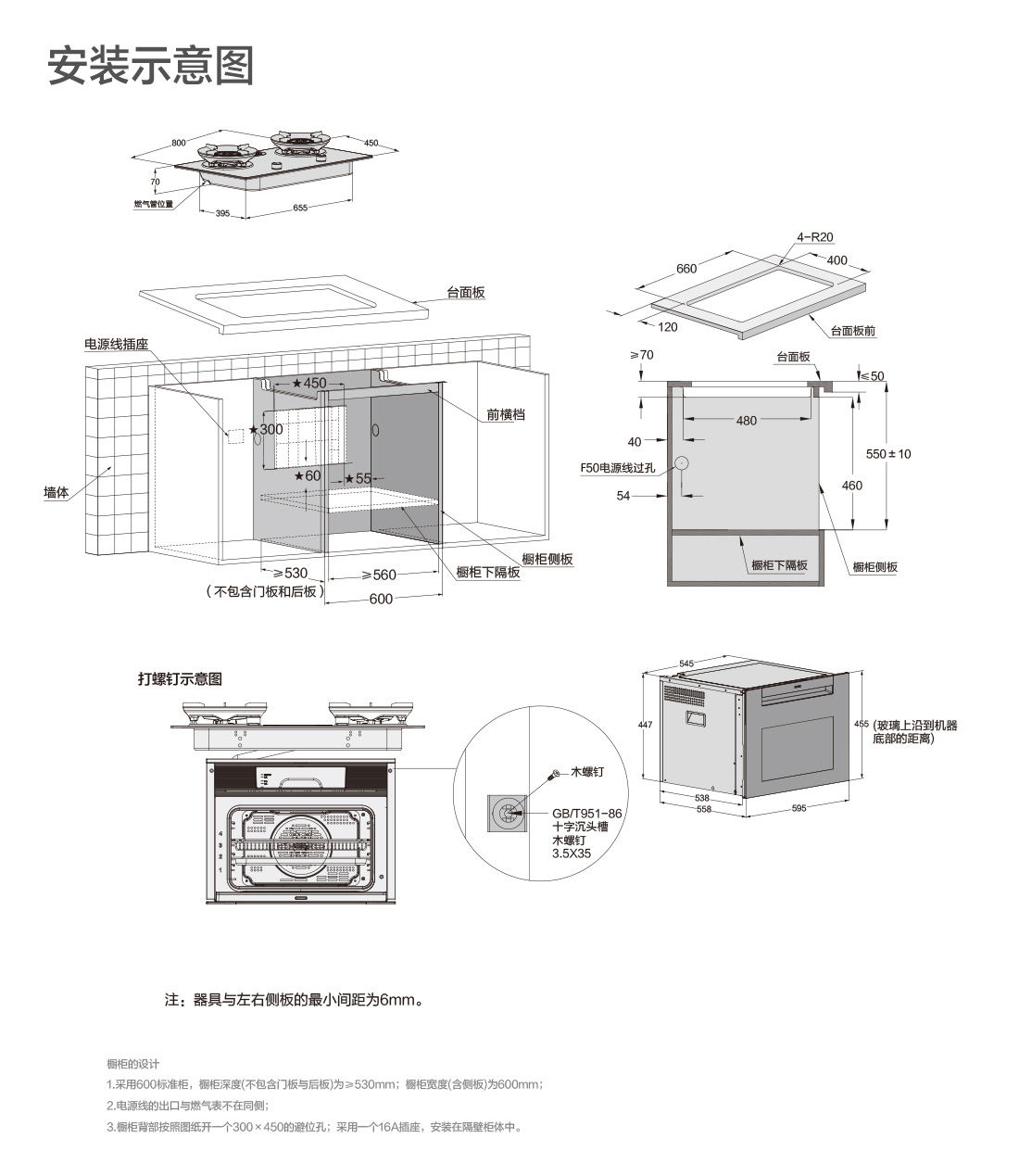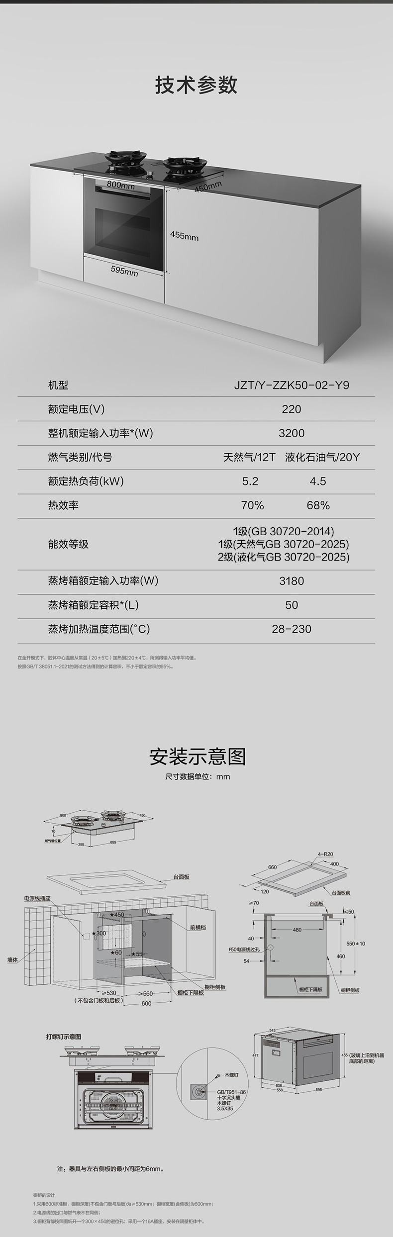 分体:灶具:长(左右)800*宽(前后)450*高(上下)70mm(灶具面板上沿至底盘下沿)/蒸烤箱:长(左右)595*宽(前后)558*高447(箱体上下)mm(玻璃上沿到机器底部的距离455mm)