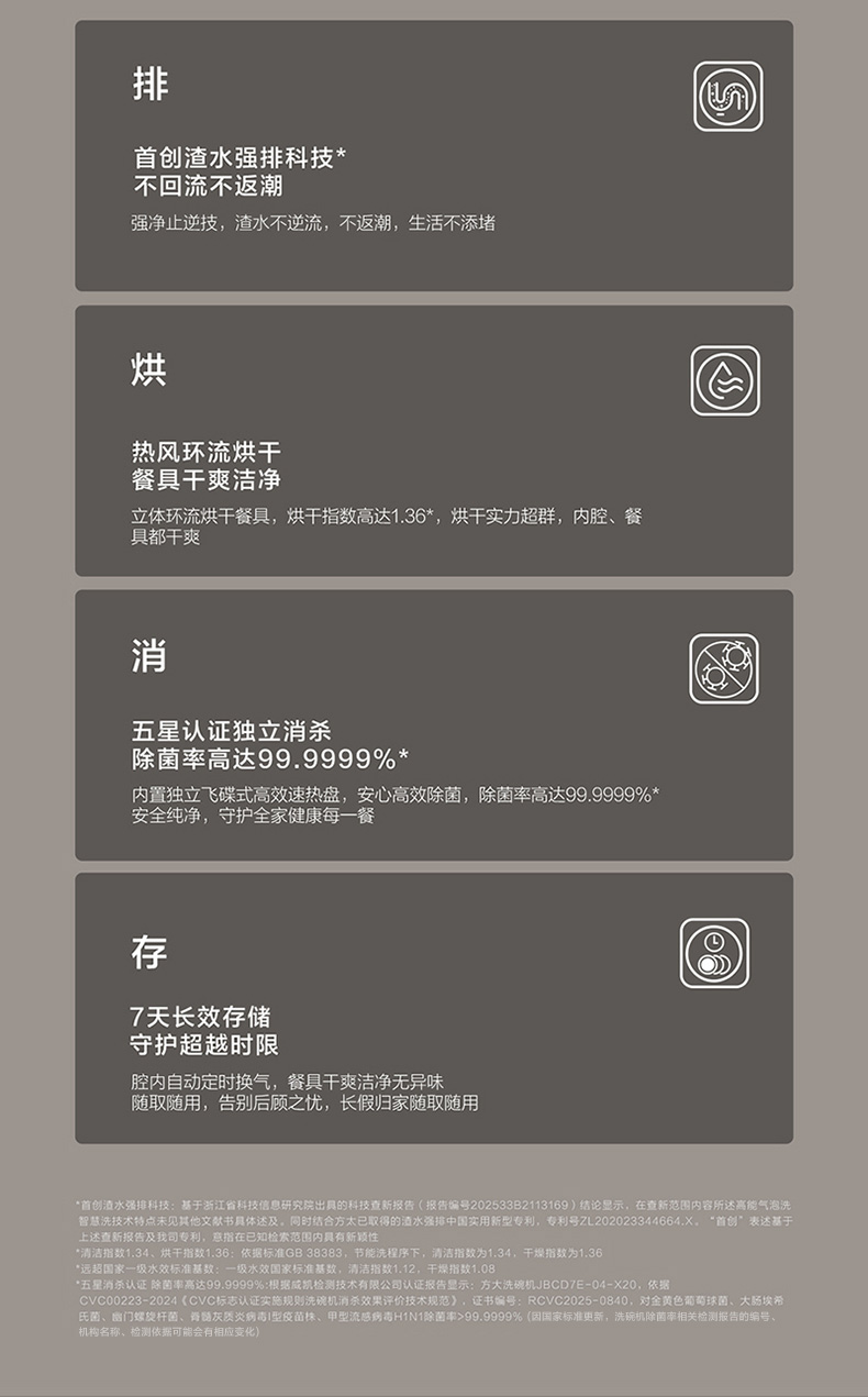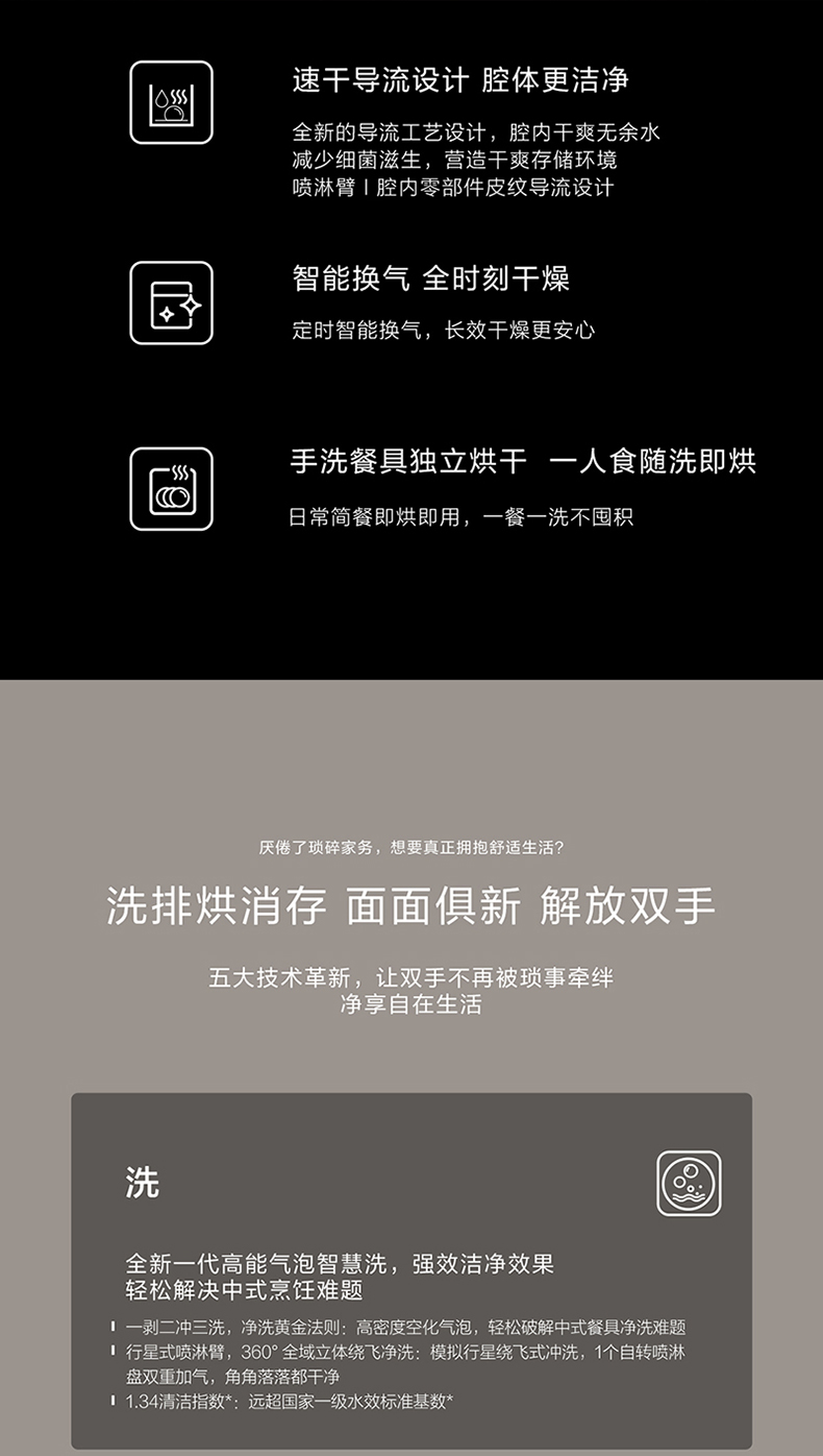 保洁存储、上层速洗(开机后长按保洁存储3S进入免水洗独立烘干)