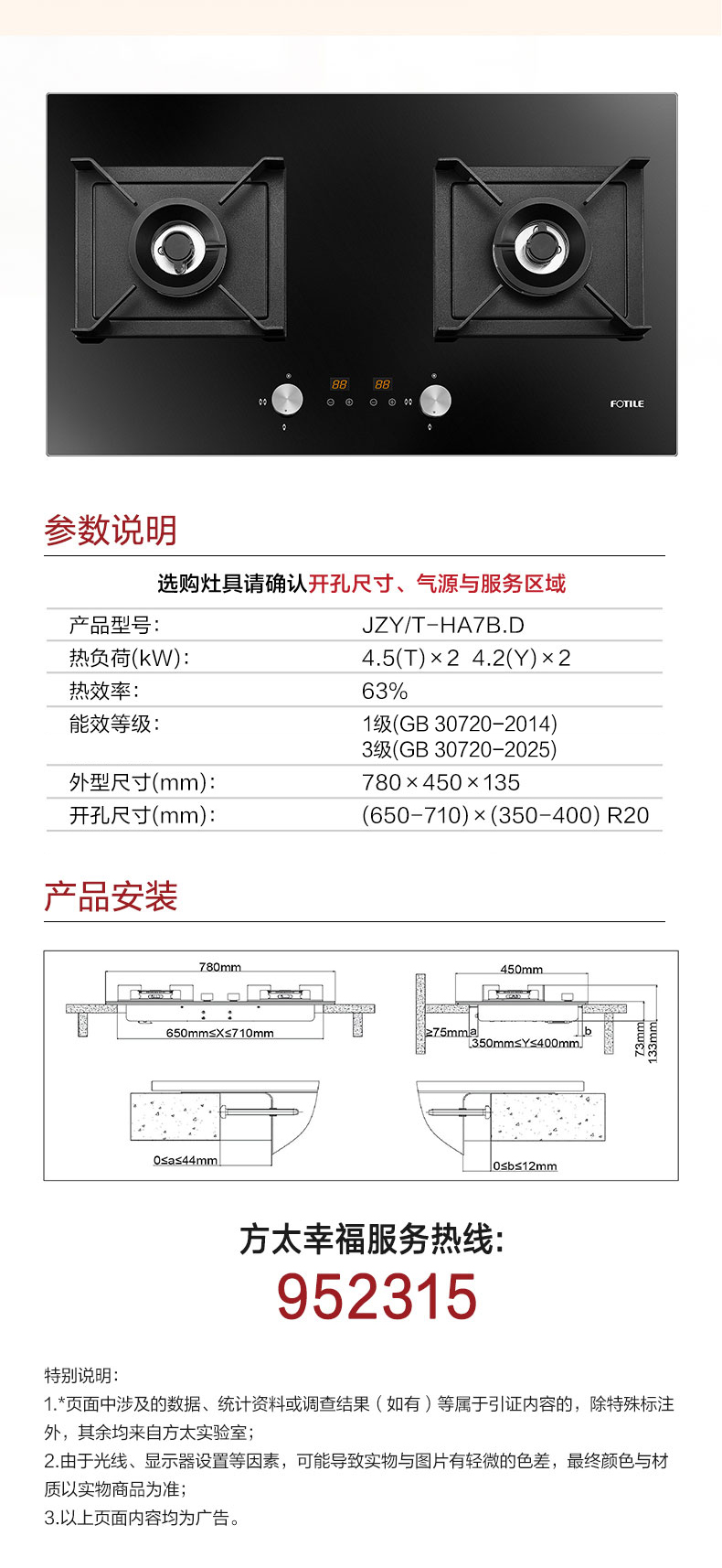 全新安装时,建议开孔长(左右)650*宽(前后)350 R角20;如果做替换安装,可接受的开孔范围:长(左右)(650-710)*宽(前后)(350-400) R角20;具体见说明书安装示意图