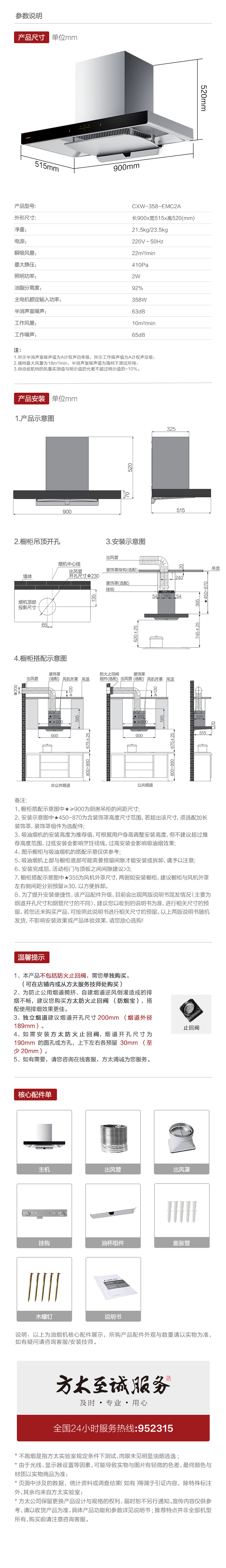 -所示半消声室噪声值为A计权声功率级,所示工作噪声值为A计权声压级 -强档最大风量为18m³/min,半消声室噪声为强档下测试所得 -以上所示参数为执行GB/T 17713-2022标准