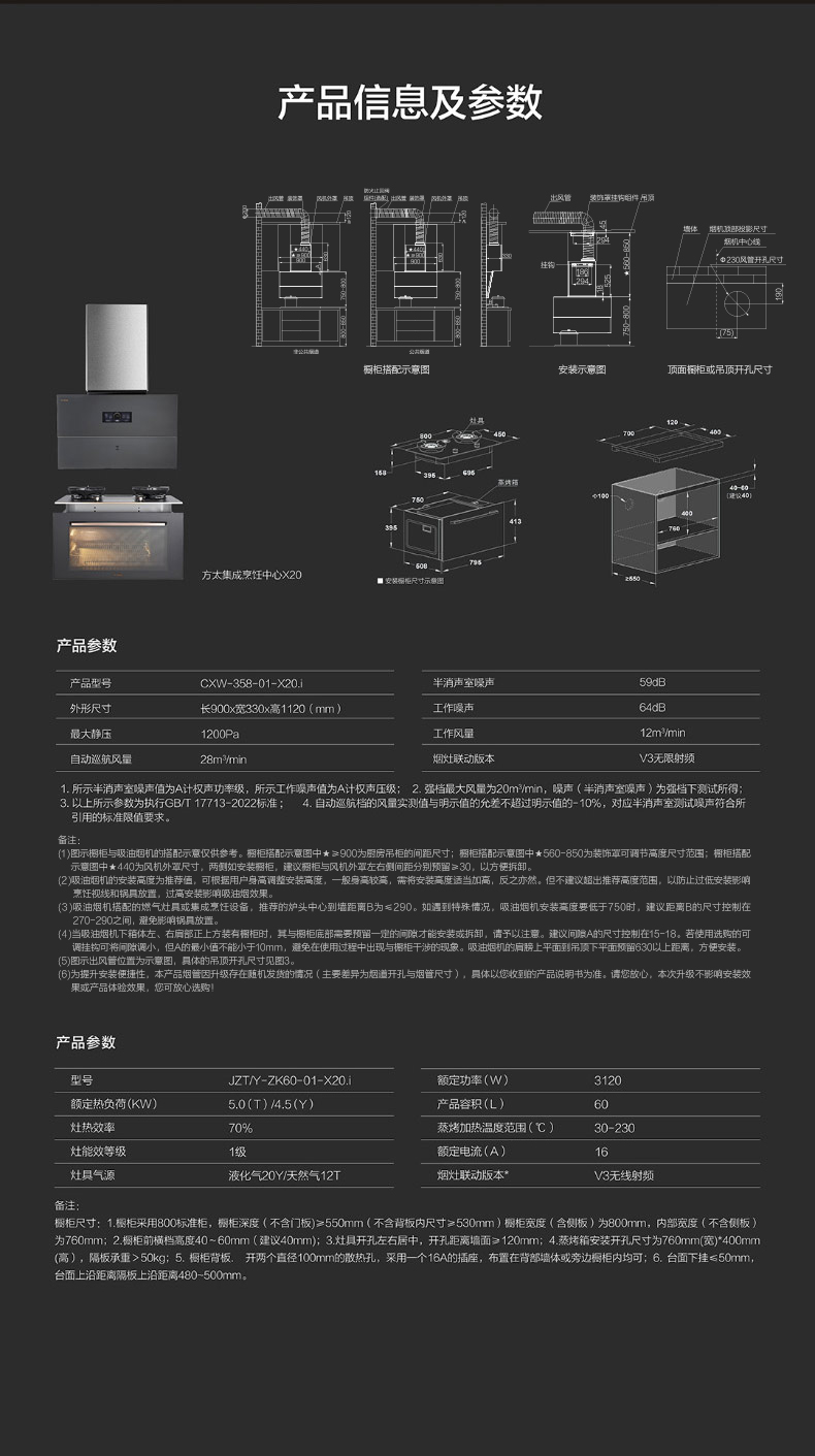 -强档最大风量为20m³/min,半消声室噪声为强档下测试所得