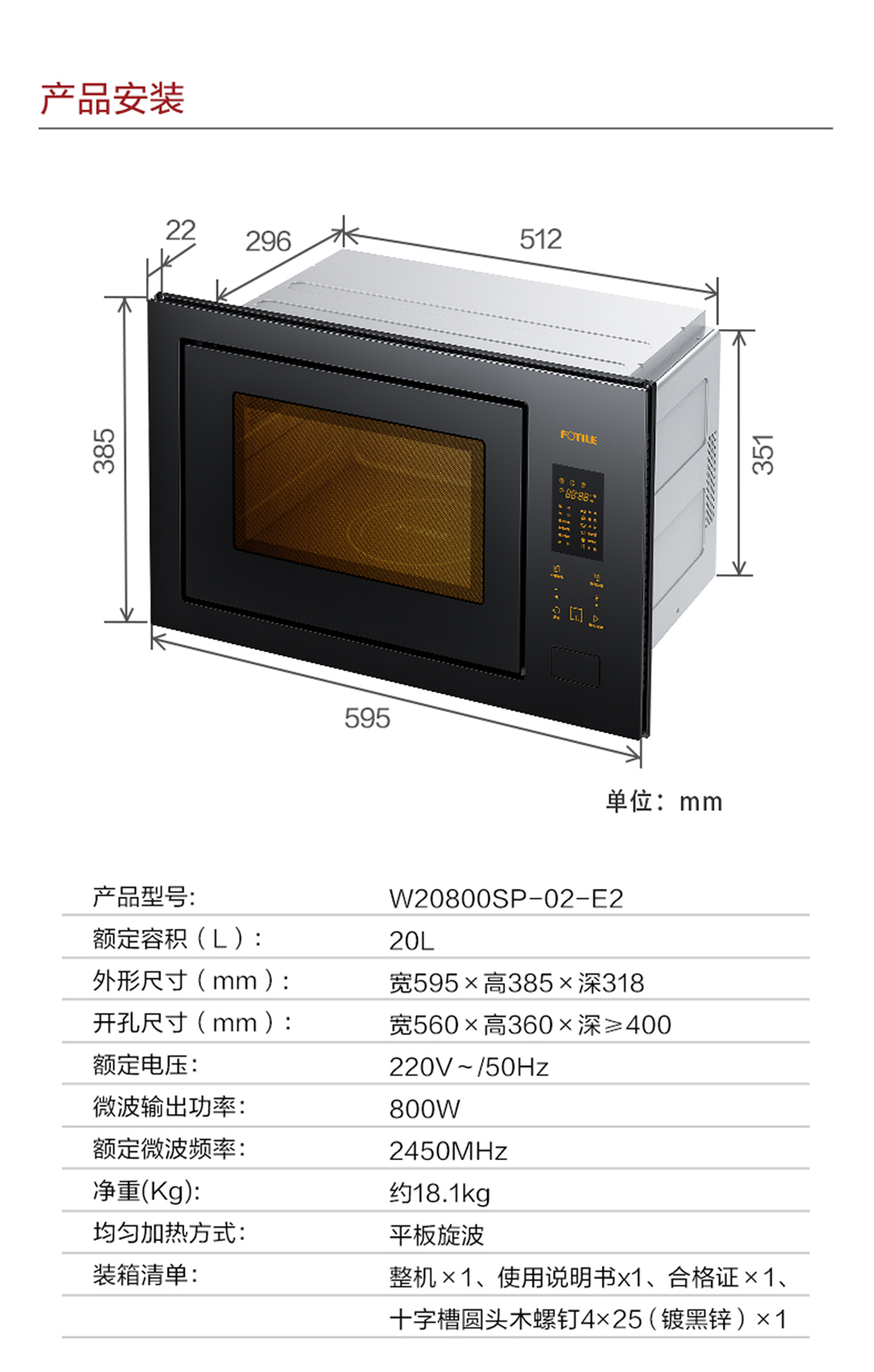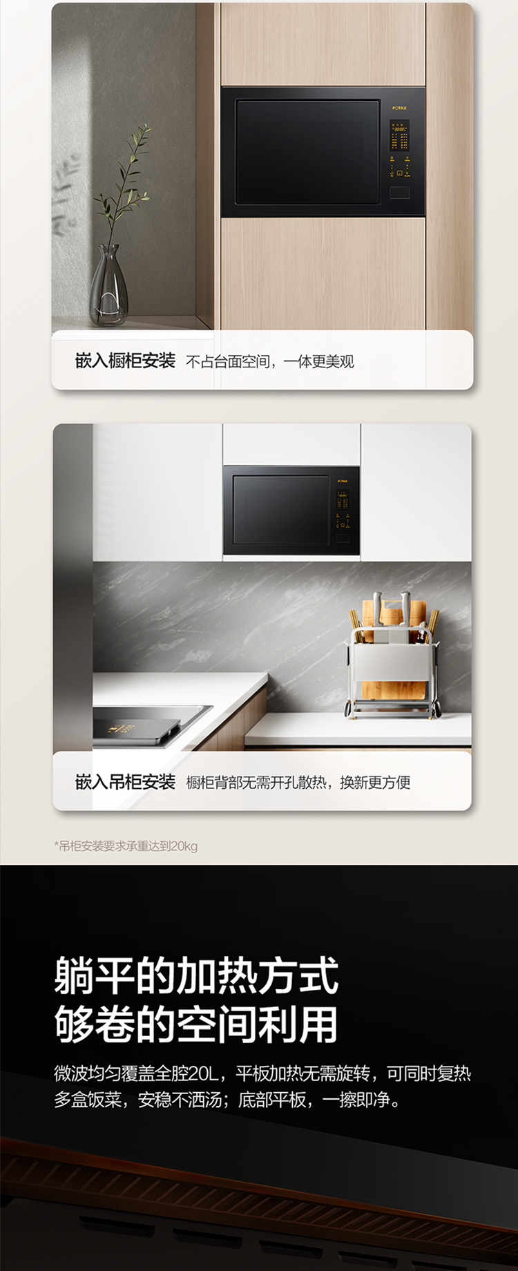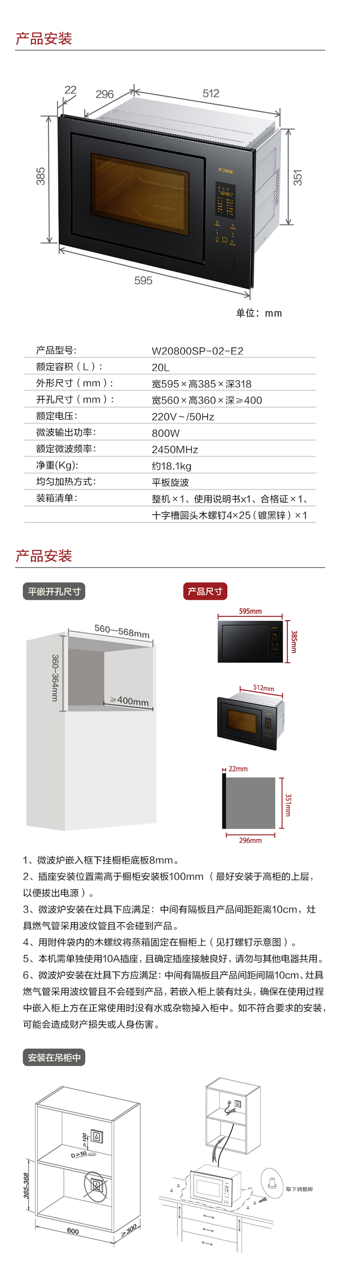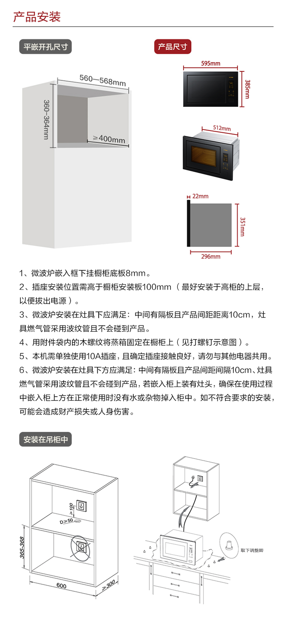 吊柜开孔:宽(左右)560*高(上下)360*深(前后)300mm(插座在微波炉不同层);橱柜开孔:宽(左右)560*高(上下)360*深(前后)400mm