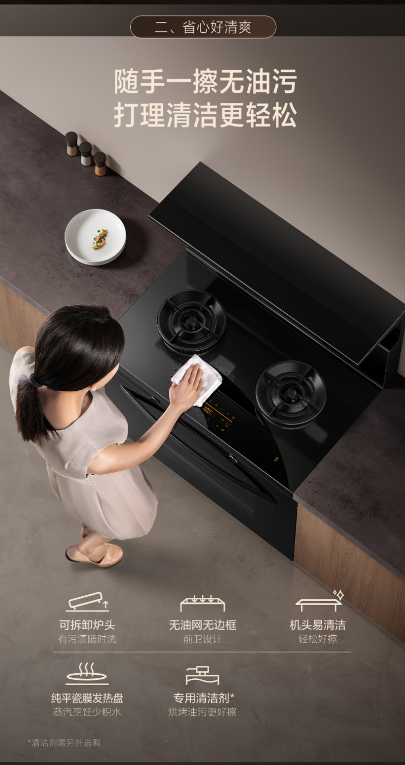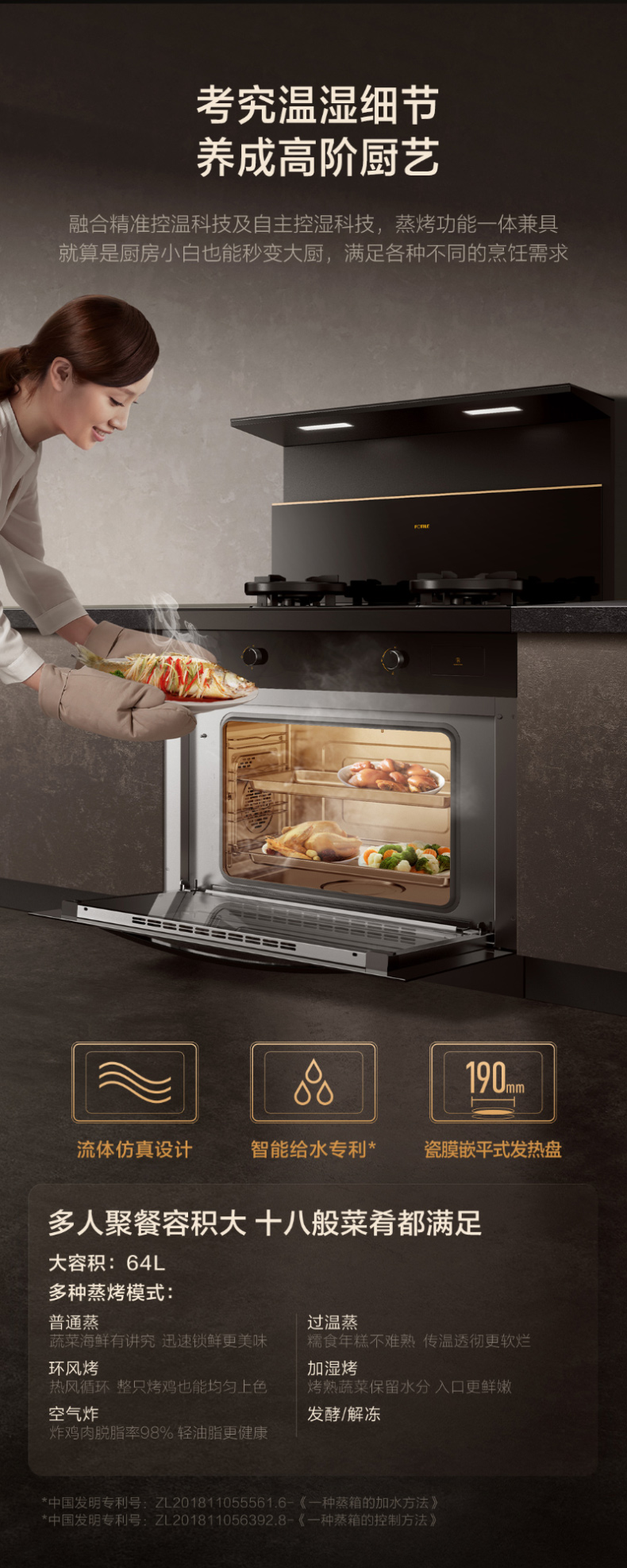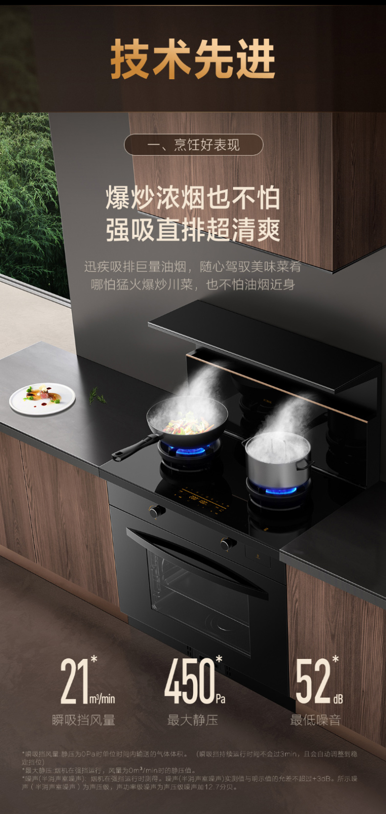 2、在加湿烤模式下,腔体中心温度从常温(20±5度)加热到220±4度,烟气吸排装置强档模式,台面照明灯开启状态下所测得的功率平均值