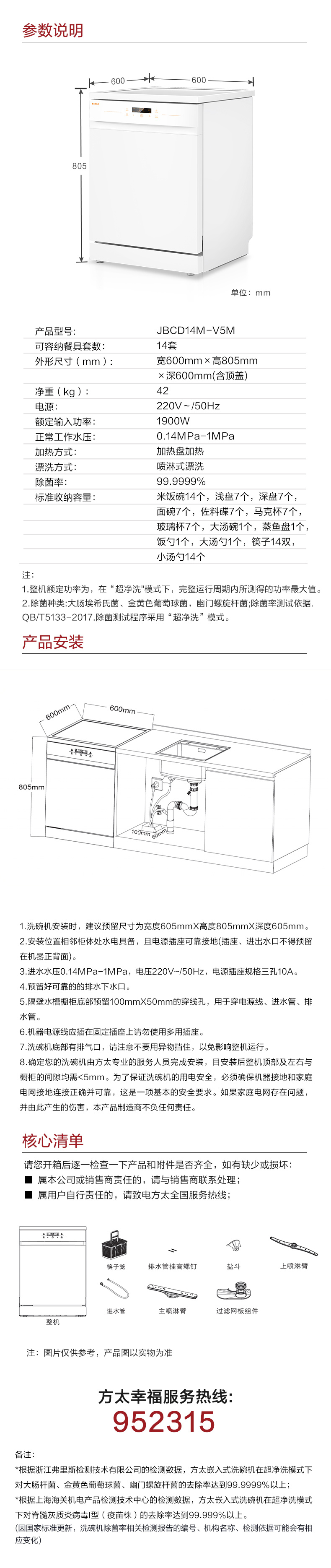 ①建议独立式安装,无需开孔,需预留尺寸:宽(左右)605*高(上下)805*深(前后)600mm